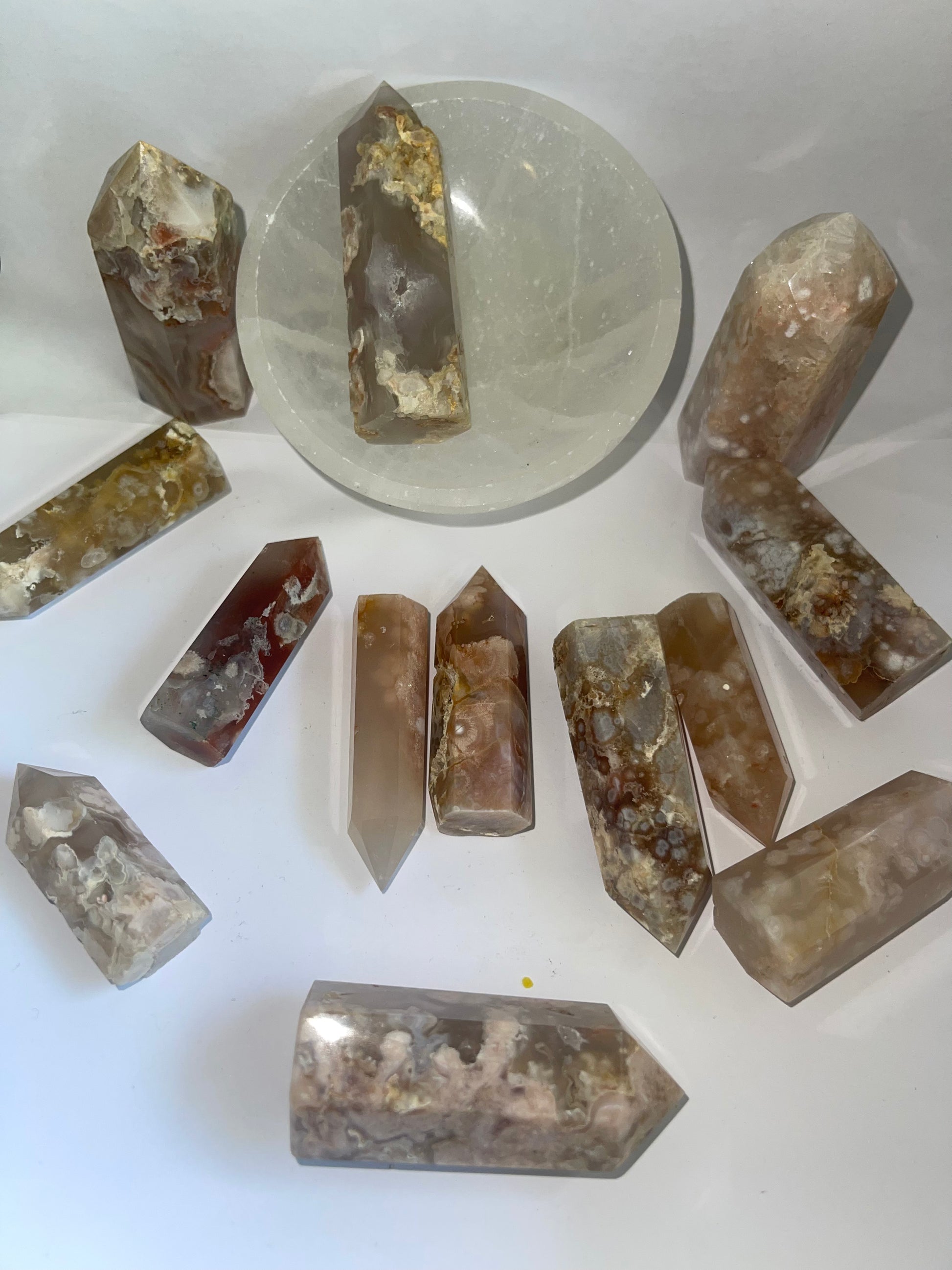 The pink agate towers are know and according to modern -day crystal practitioners, the stones protective energy remains.pink agate is the ultimate energy shield .its said to create barrier around your auric field to keep you safe. From negativity.