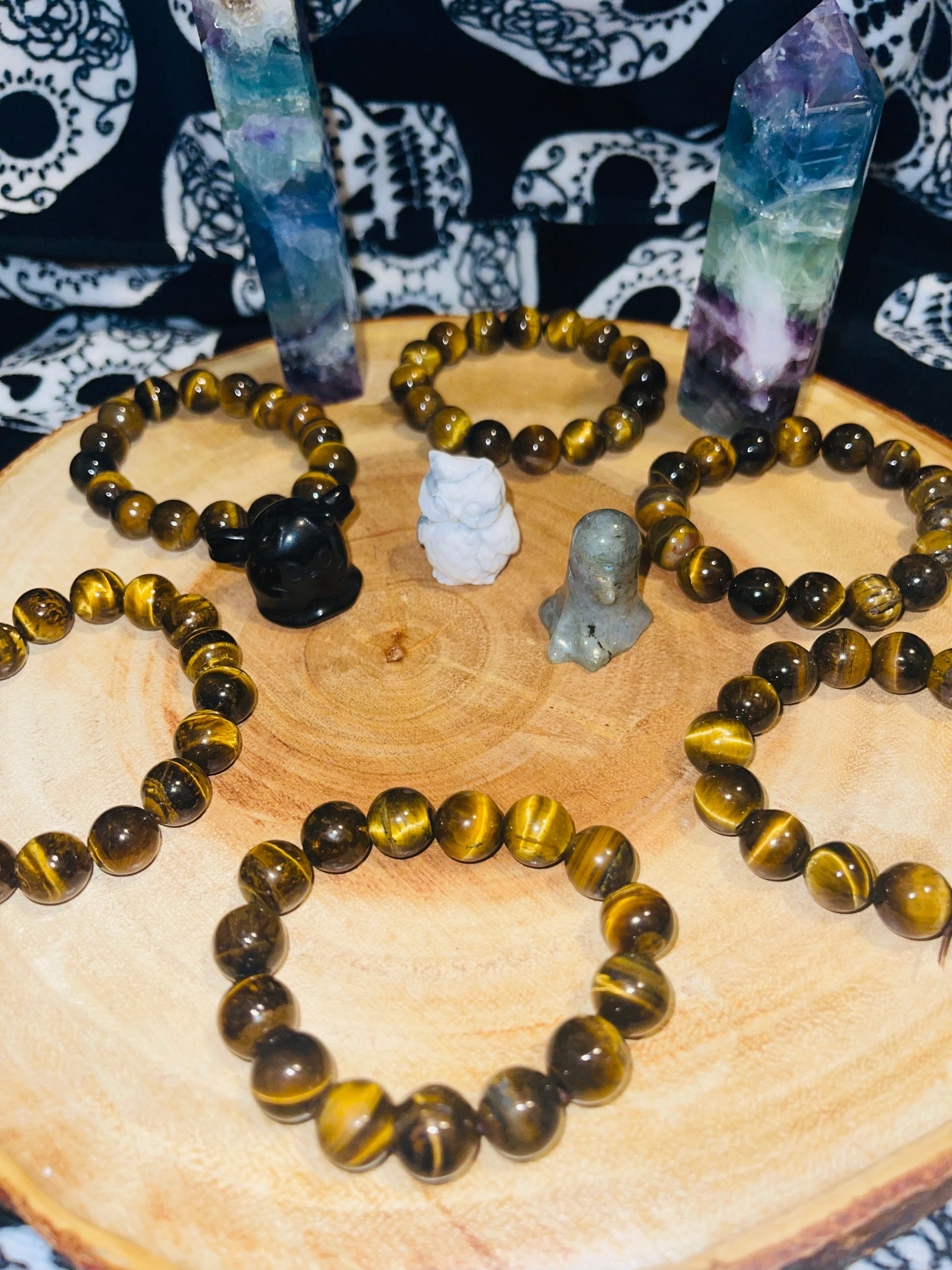 Tiger's Eye bracelets are associated with courage, strength, vitality, and power. The stone is thought to promote balance and harmony in one's life. It is believed to help align the physical, emotional, and spiritual aspects of a person, fostering a sense of overall well-being.